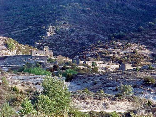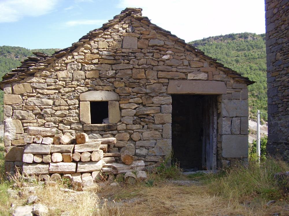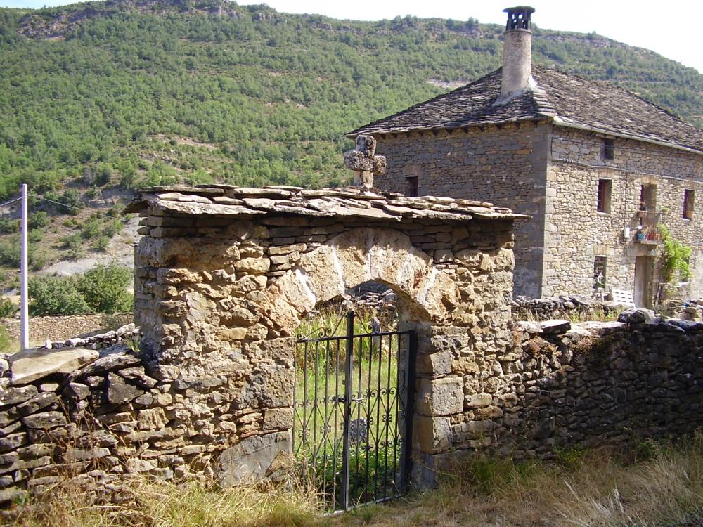 Se levantan las construcciones sobre un espolón inclinado, formando recodos y alguna pequeña plazuela,, son viviendas altas de dos plantas, levantadas con sillarejo y lajas de piedra sin rebozo alguno, proporcionando de esta forma todo el conjunto, un color parduzco. Los ingresos a estas edificaciones son bajo arcos de medio punto hechos con dovelas de piedra. En sus fachadas se abren vanos o ventanas que se enmarcan por cuatro piedras. En alguna de estas casas sobresale el fogaril y sobre la cubierta, una chimenea cilíndrica.