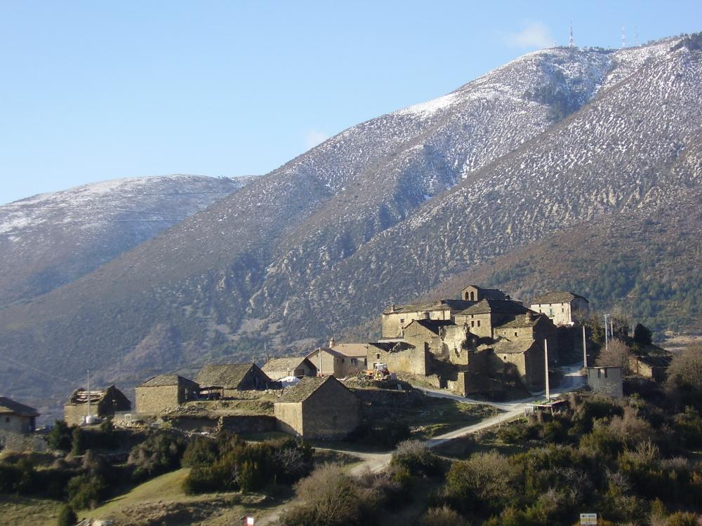 Perteneciente al municipio de Nueno, está situado al norte de la Hoya de Huesca, en una peña en la convergencia de la sierra de la Gabardiella y del Aguila, con una composición urbana que hace equilibrios entre los escarpes abruptos de la sierra, este lugar que alcanza los 934 m. de altitud.